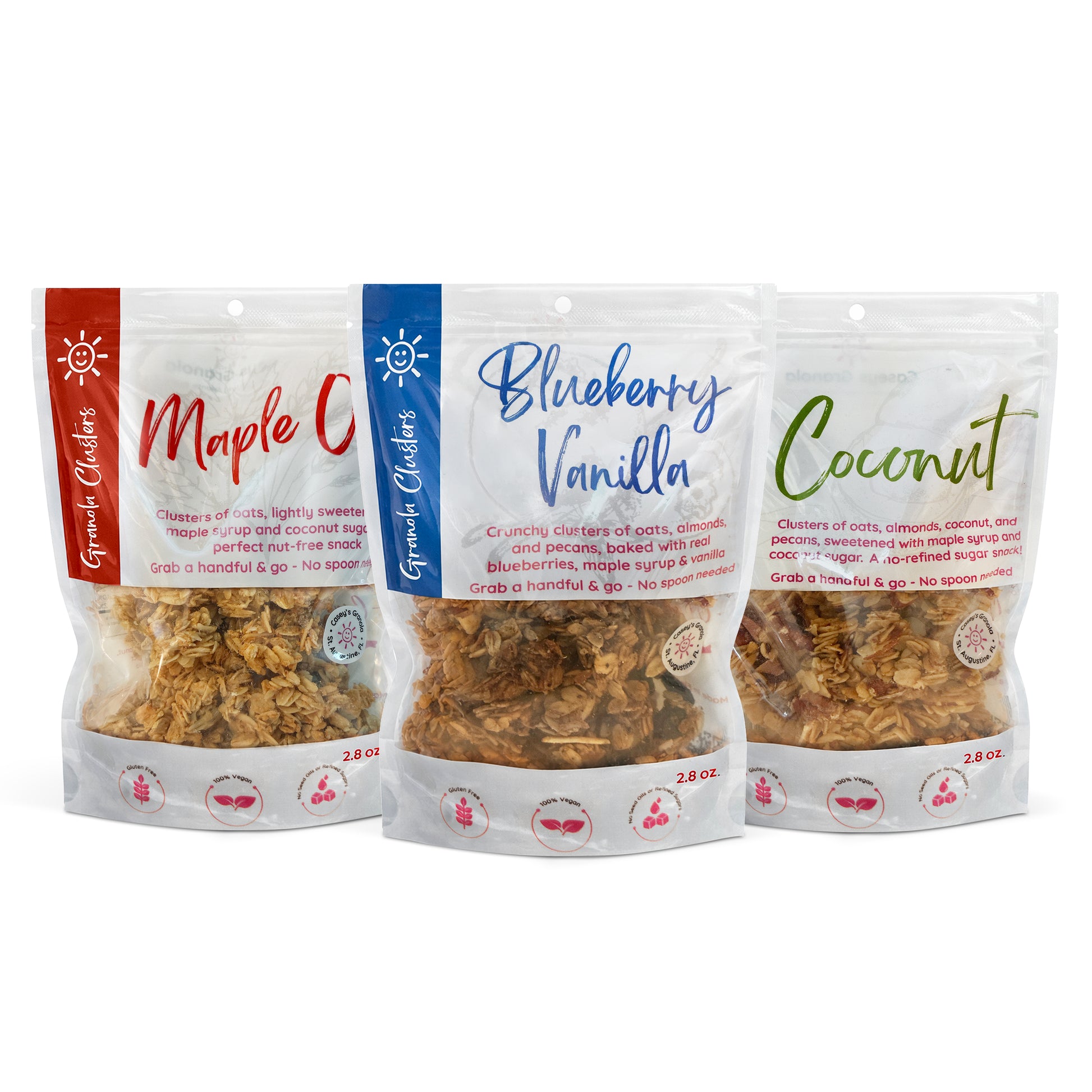 Handcrafted in St. Augustine, Florida, each batch is baked until golden and crisp, made with pure maple syrup, coconut sugar, almonds, pecans, and a touch of sea salt. Available in both regular and gluten-free oats, so everyone can enjoy!