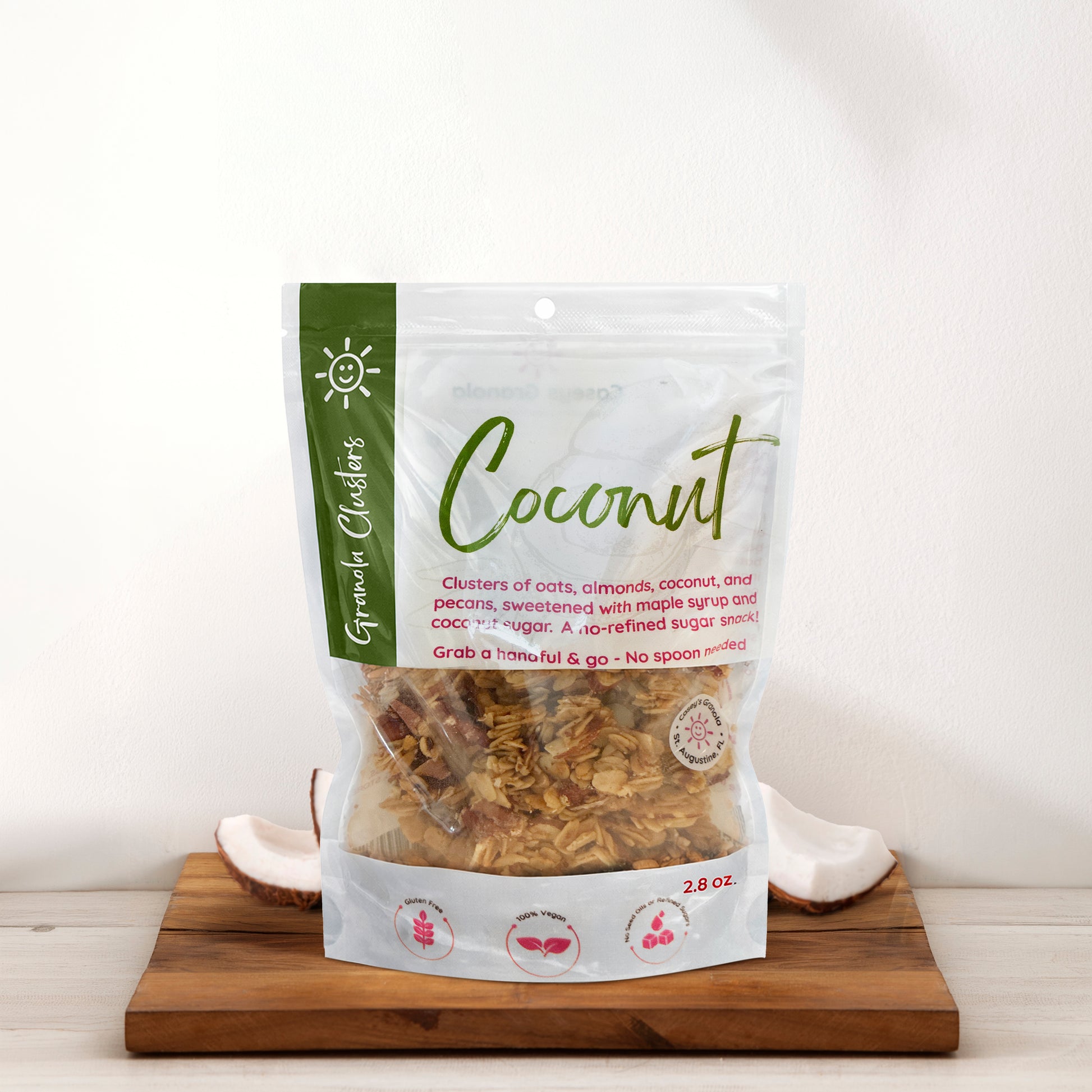 Our Coconut Granola Clusters take everything you love about Casey’s Granola — clean ingredients, small-batch flavor, and irresistible crunch — and turn it into the perfect grab-and-go snack.